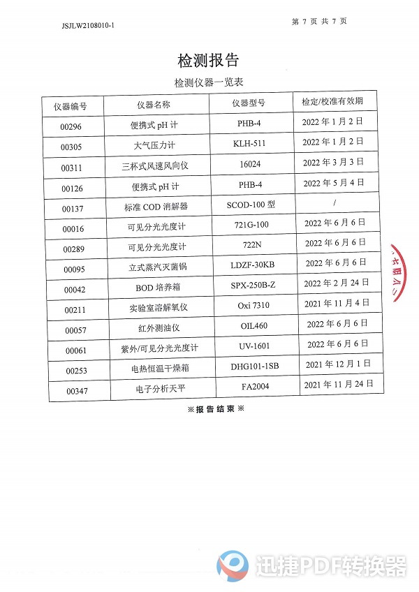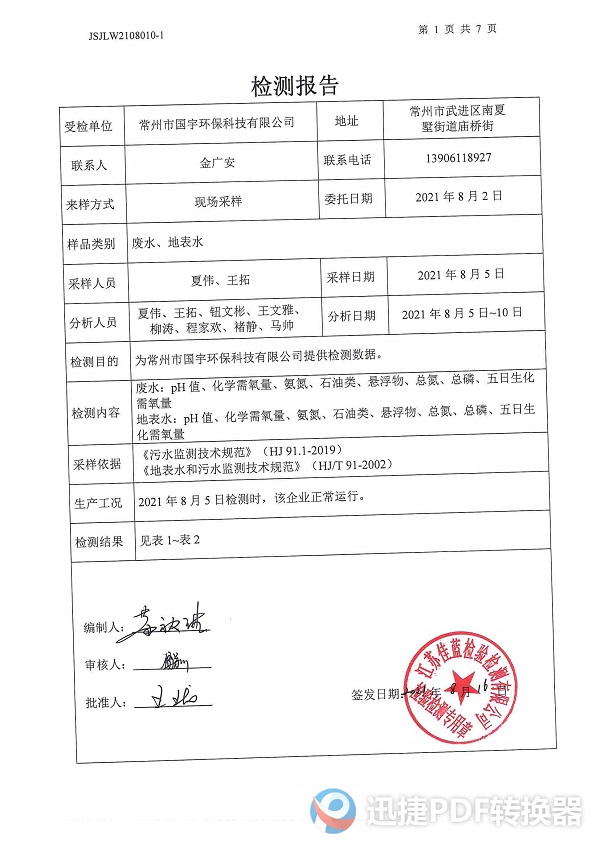 2021年下半年檢測報告--廢水、地表水